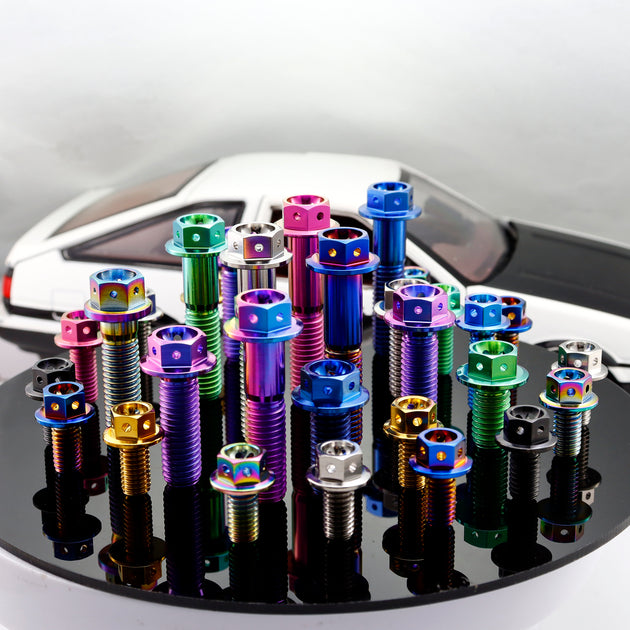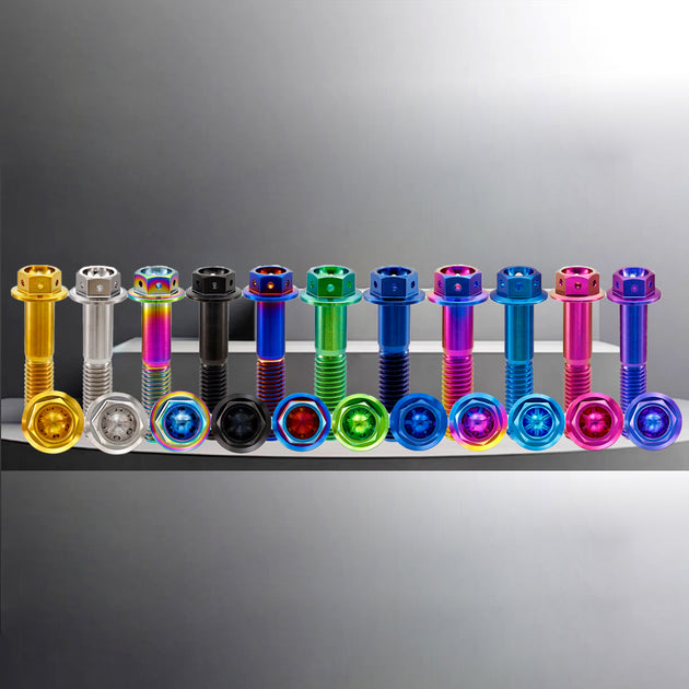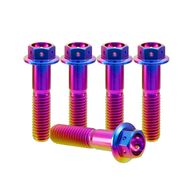RISON TITANIUM M10 x 1.25mm GR5 Titanium Hex Flange Bolt with Drilled Head ¨C Fully Threaded for Subframe Covers & Cosmetic Panels | 11 Colors | 25mm Length