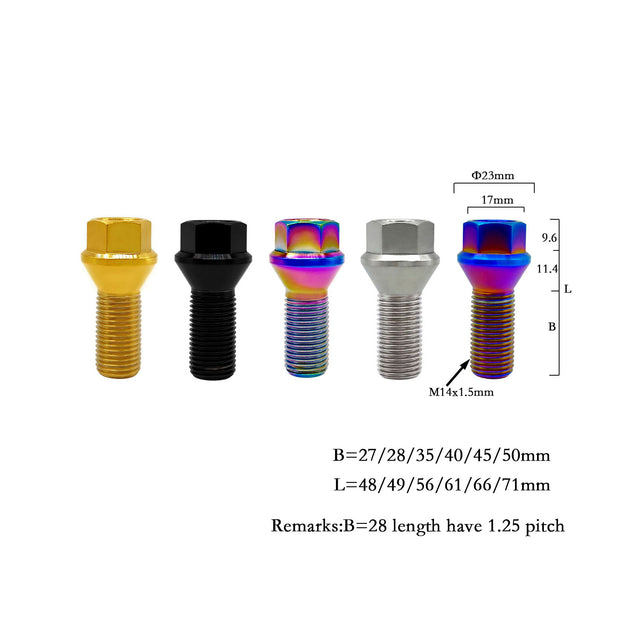 RISON TITANIUM Lug Bolt Conical Seat Lug Bolt M14x1.5 Lug Bolt GR5 Titanium Lug Bolt 20PCS
