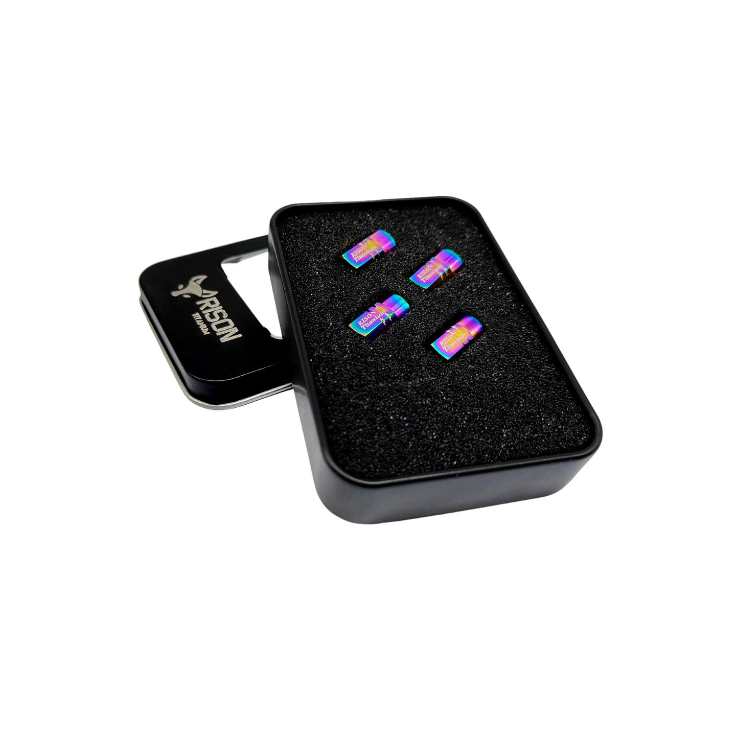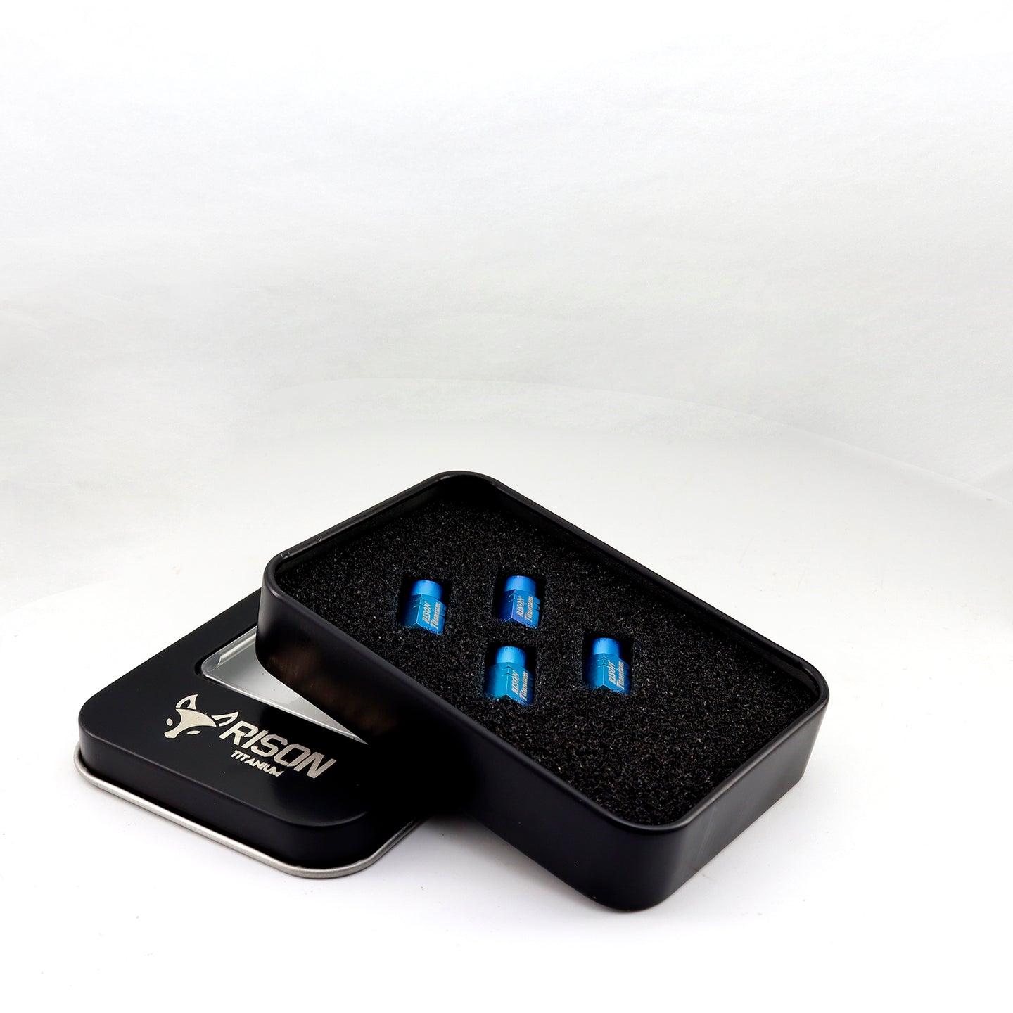 4 x Titanium Valve Dust Caps + 1 Protective Storage Box